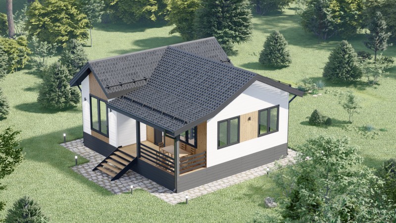 Уютный дом в котором есть все необходимое. Обратите внимание выделена хоз.комната почти 5 м.кв. Её можно легко присоединить к основной гостинной или разместить там рабочую кухню. Терраса 10.8 м.кв.
