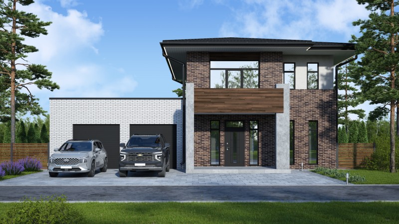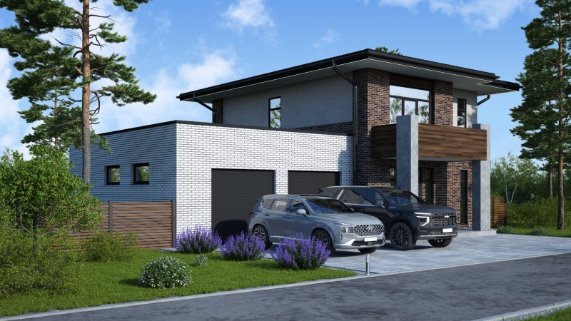 Красивый большой двухэтажный дом с оригинальными комбинированными фасадами облицовочный кирпич и декоративная штукатурка, интересной кровлей и гаражом на 2 авто. Имеет четыре спальни, одна из них мастер спальня с гардеробной и санузлом, просторную кухню гостиную, котельную, постирочную, второй санузел, закрытое от осадков крыльцо и просторную террасу.