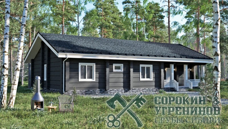 Индивидуальный проект жилого дома из лафета сечением 300х450мм, площадь дома 166м2. Размер сруба 13х18 метров. Одноэтажный дом небольшого размера выполнен из мощного большого лафета кедра, теплый и красивый, в стиле Европейского Шале. Планировка дома: три комнаты, большая гостиная совмещена с кухней, прихожая, котельная и два санузла, есть небольшая веранда. Дом был установлен в Челябинске в 2015 году.