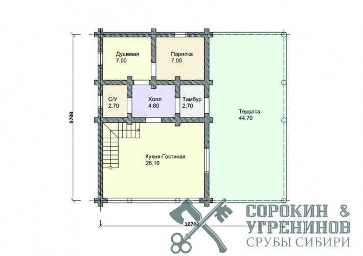 Проект дом-баня из бревна средним диаметром 360мм, размер сруба дома 9,7х10,7м, общая площадь дома 122м2, объём бревна в срубе 105м3. Двухэтажная Дом-баня строился по индивидуальному проекту. Установлена песь Гефест Сочи-2 в серпентините. Кровля из натуральной керамической черепицы. Установка сруба производилась в Новосибирской области в 2021 году в деревне Абрашино.